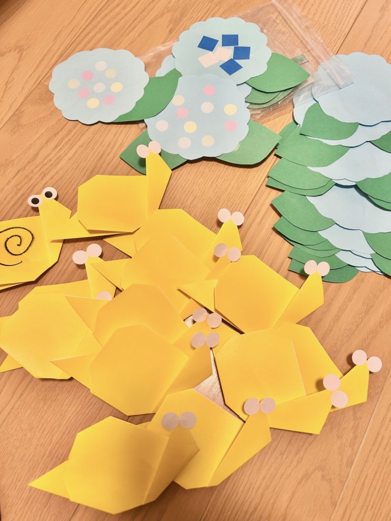 (奥の四角いお花の紫陽花が2〜3歳さん用)